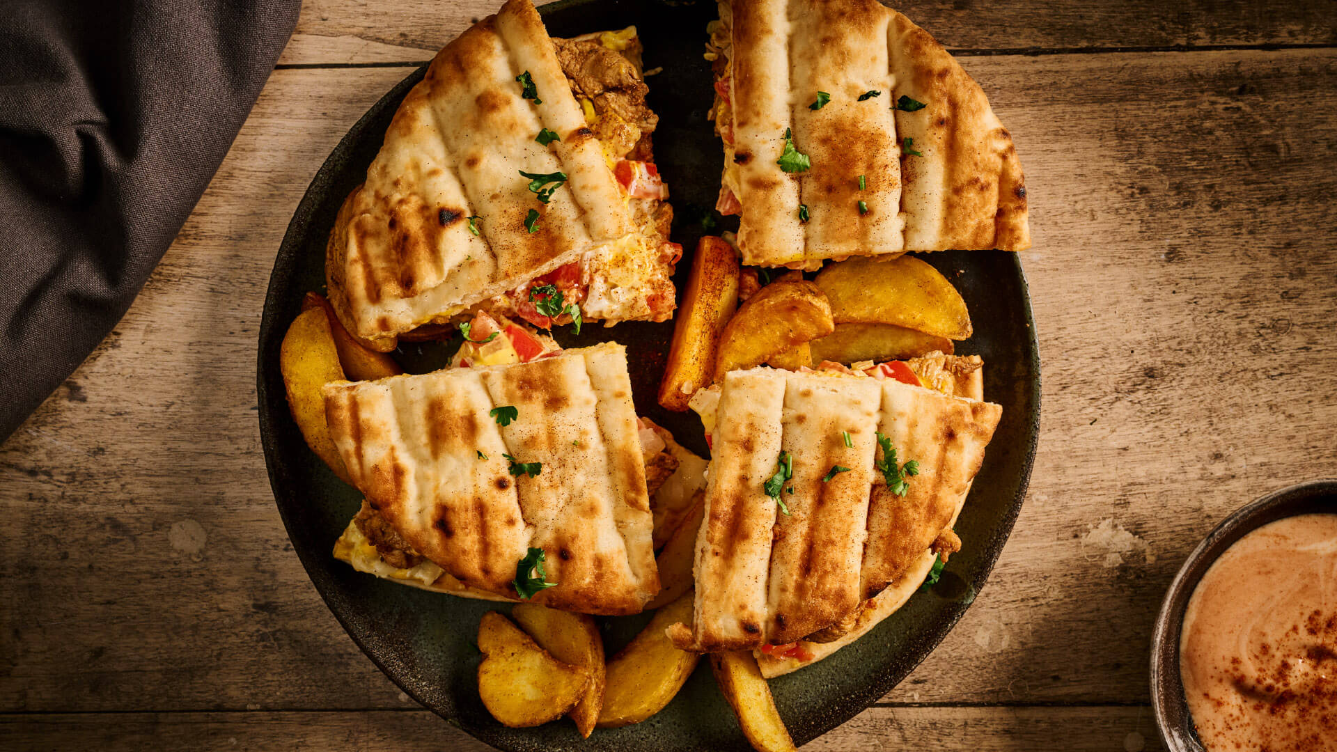 Κόβουμε τα σάντουιτς στη μέση και σερβίρουμε με σαλάτα της επιλογής μας.