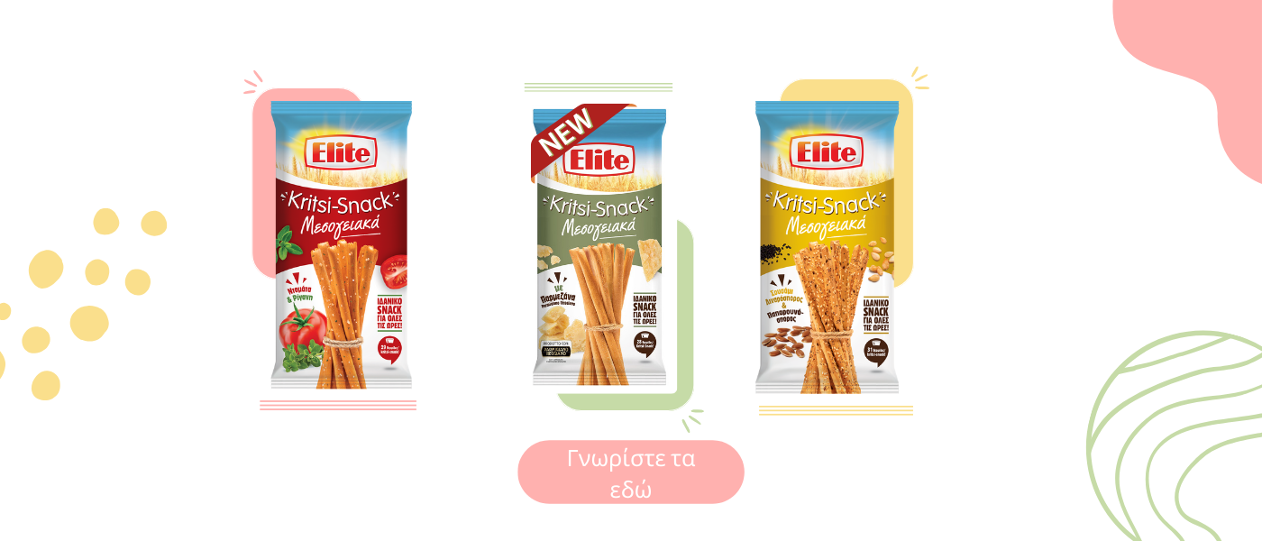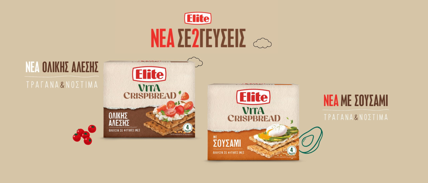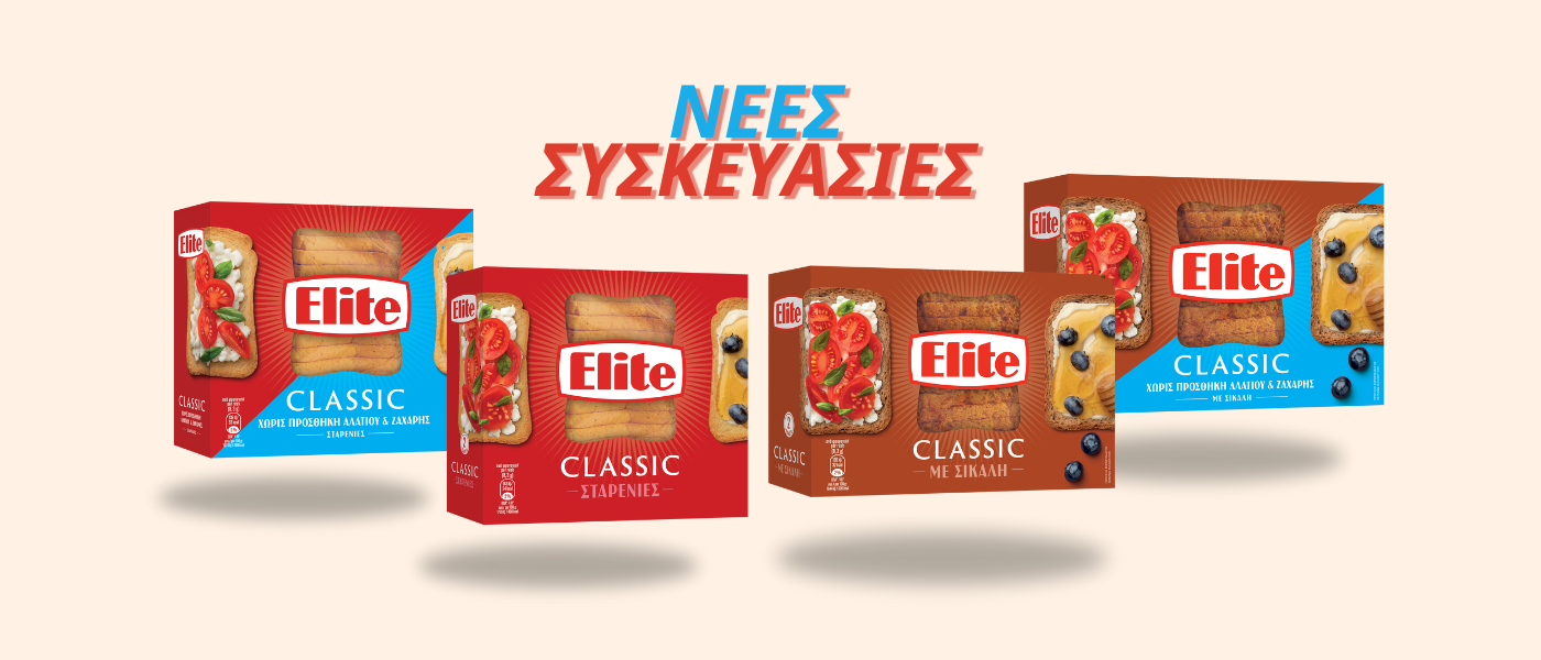 Η Elite της ποιότητας, της διατροφικής αξίας και των νέων γευστικών εμπειριών, χρόνια τώρα δημιουργεί με φροντίδα και αγάπη ό,τι πιο νόστιμο και θρεπτικό. Ακολουθώντας την ίδια πάντα συνταγή επιτυχίας από το 1968, παραμένει πιστή στις αξίες που την ανέδειξαν ως κορυφαία μάρκα φρυγανιάς και συνεχίζει να πρωτοπορεί με γευστικές προτάσεις που ενθουσιάζουν. Με έμφαση στις ανάγκες του σύγχρονου καταναλωτή, η Elite επεκτάθηκε στην κατηγορία των σνακ με τα Elite Crackers Μεσογειακά και έθεσε τις βάσεις για την ανάπτυξη καινοτόμων προϊόντων με άξονα τη μεσογειακή διατροφή, προσφέροντας έτσι διατροφικής αξίας ισορροπημένες επιλογές σνακ. Με τόσες προϊοντικές επιλογές από την Elite για κάθε στιγμή της ημέρας, οι γευστικές ιδέες δεν σταματούν ποτέ!
